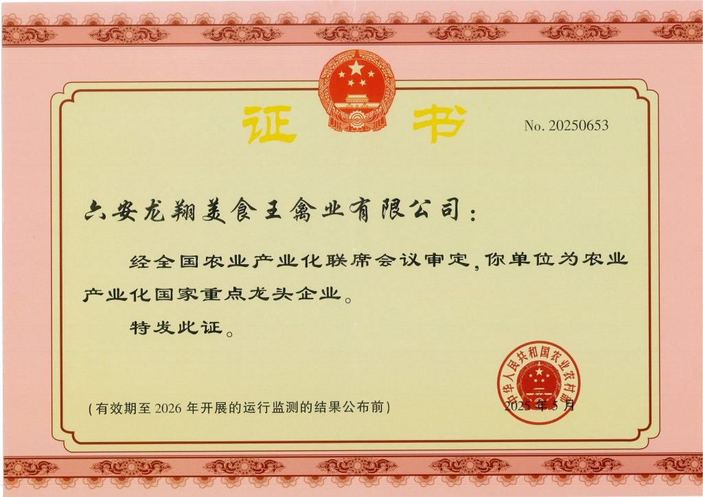 In 2021, the company was recognized as the "Anhui Lunde Goose Standardized Breeding Demonstration Zone", leading the way of standardized production of waterfowl in China.