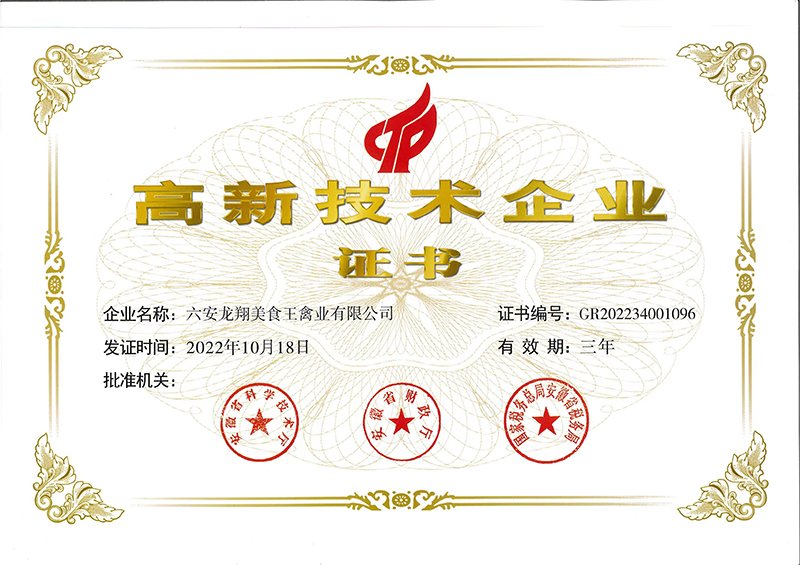 Lu’an Longxiang Food King Poultry Industry Company was established in March 2006 and is a national key leading enterprise in agricultural industrialization with complete export qualifications. The company has 12 authorized invention patents, 2 local standards, 2 enterprise standards, and 18 group standards. The “Longxiang” trademark has been rated as a well-known trademark in China by the State Administration for Industry and Commerce. The series of products have been successively rated as Anhui Famous Brand, Anhui Characteristic Tourism Commodity, International Agricultural Products Trade Fair Gold Award Product, Specialized and Innovative Enterprise, National Advanced Private Enterprise Helping Ten Thousand Villages, High tech Enterprise, National Green Factory, Anhui Province Poverty Alleviation Advanced Collective, and Jiangsu Zhejiang Shanghai Green Agricultural Product Processing and Supply Base. The company mainly engages in the breeding, slaughtering, and processing of Lande geese, as well as the production of goose fatty liver, goose liver sauce, and goose by-products. Huoqiu County has formed an annual production capacity of 5 million Lande geese for breeding and processing, 5000 tons of goose fat liver, and 20000 tons of goose by-products, with an annual comprehensive output value of 2 billion yuan. The company has obtained certifications such as HACCP, ISO9001, and organic products, and has a good reputation in the market, receiving high praise from consumers.